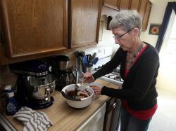 brownie batter in the kitchen of her home in the White City section of Tulsa.
