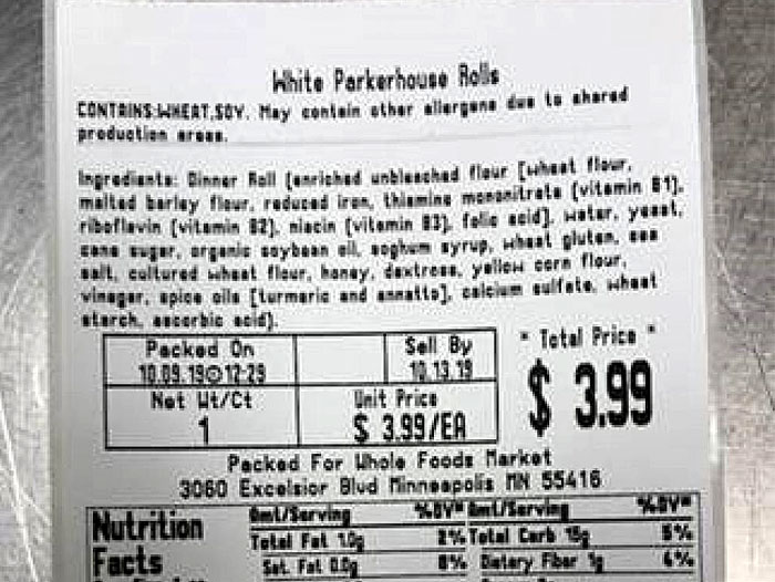 The rolls, available in a 12-count with PLU 49557, were sold between 9/23/2019 – 10/8/2019 at the following Whole Foods Market stores: