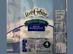The recalled product is in an 11.3-ounce blue package marked “liveGfree Gluten Free Classic Soft White Hamburger Buns” with lot numbers ending in #0897 on the front of the package and the UPC #0 41498 25980 8 on the back of the package. The package has an allergen statement that states, “Made in a facility that also produces products with eggs.”