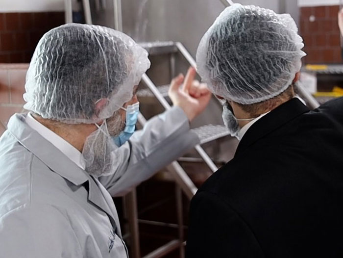 Pictured here is Rabbi Schwartz. Rabbis inspect all ingredients to make sure that no corn, soy, yeast, or certain legumes are being used; that the facility is cleansed; and that the manufacturing process adheres to strict kosher guidelines.