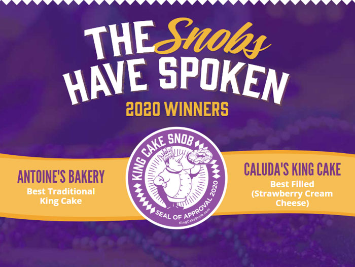 “We were thrilled to once again give Louisianans, and King Cake Snobs everywhere, the opportunity to vote for their favorite King Cakes and bakeries,” said Connaughton. “Our fifth competition was another delicious celebration of one of Mardi Gras’ tastiest traditions. Congratulations to the bakeries and voters who contributed to the crowning of our 2020 winners!”