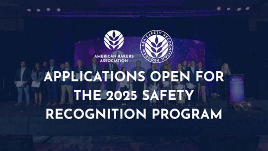 The American Bakers Association (ABA) is proud to announce that applications are open for the 2025 Safety Recognition Program, an initiative that recognizes member company facilities for their effective and successful safety manufacturing operations.