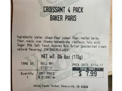Bakers of Paris is recalling plain, almond, and chocolate croissants sold in 18 Northern California Whole Foods Market stores due to an undeclared allergen. The croissants, sold individually in self-service cases and in clear plastic packs of four, are made with an egg wash which is not declared on the ingredient list. People who have an allergy or severe sensitivity to eggs run the risk of serious or life-threatening reactions if they consume this product.