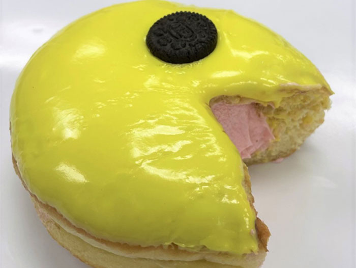 Pac-Man Donut: This video-game-inspired donut scores extra points because it is filled with strawberries. A strawberry-cream-filled donut with yellow frosting and Oreo cookie on top is designed to look just like Pac-Man. (Owen R., age 17, Phoenix)