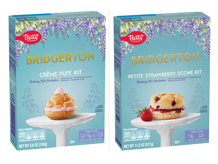 Three new baking mixes are available now and each is inspired by the characters and scenes from the romantic Netflix series set in the 1800s. The hit regency drama-themed Créme Puff Kit, Petite Sponge Cake Kit and Petite Strawberry Scone Kit are available now at Walmart for $7.