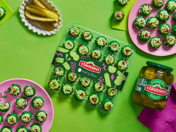 Combining Baked by Melissa’s famous handcrafted bite-size cupcakes and Claussen Pickles’ tangy flavor, the Baked by Melissa x Claussen Pickle Cupcakesfeature a delicious pickle-infused cake topped with pickle buttercream icing and red and white celebratory sprinkles. These bite-sized delights combine beloved Claussen pickles with Baked by Melissa’s classic vanilla cake and icing. The result is a bright, balanced sweet-salty-sour pickle treat, perfect for your summer parties.