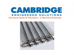 Cambridge Engineered Solutions is the world's largest metal conveyor belt manufacturer and a global leader in filtration screens. For more than a century, Cambridge has developed dynamic solutions, revolutionizing industry automation and plant operations. With more than 15 exclusive product lines and over 50 patents, our team of dedicated engineers and experts continually devise new methods to make lines run smoother, faster and handle more product weight. For information visit http://www.cambridge-es.com