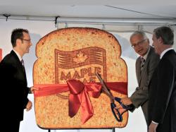 TORONTO – Maple Leaf Foods celebrated the official opening of Canada's largest commercial bakery in Hamilton, Ontario producing a variety of delicious fresh bakery products for Canadians to enjoy. This 385,000 square foot "Trillium" bakery benefits from efficient design flow and best-in-class technologies. Hamilton Mayor Bob Bratina and David Adames, President of the Hamilton Chamber of Commerce, joined Michael McCain, President and CEO of Maple Leaf Foods to offer remarks during the opening ceremony.