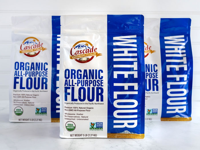 As a result, Cascade Organic Flour decided to move ahead with the introduction of 5 lb. retail bags of Organic All-Purpose Flour as a follow-up to its recent successful release of its 5 lb. retail bag(s) of Organic Whole Wheat Flour.