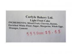 | Carlyle Bakery Ltd. | Carlyle Bakery Ltd. Light Fruit Cake | 555 g |
