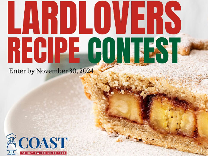 Coast Packing Company, the leading supplier of animal fat shortenings in the Western U.S., today announced the 8th annual #LardLovers Recipe Contest. With National Lard Day on December 8, Coast calls home cooks, bakers, and culinary enthusiasts to submit their irresistible original recipes showcasing the rich flavors of their family’s best-kept secret ingredient, lard.