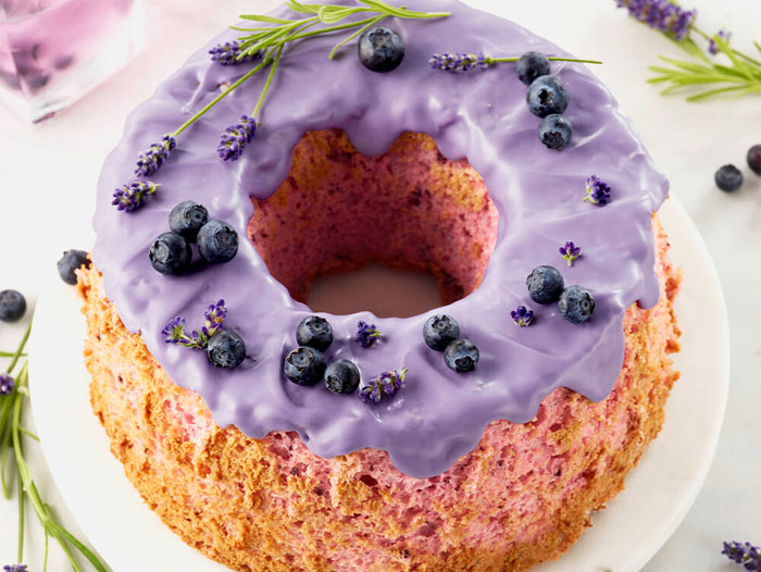 Blueberry Compound Coating is the newest flavor of Royal Steensma Souplesse, a flexible, fat-based compound coating perfect for decorating or enrobing pastries and breads. It offers easy melt, whip, and reuse capabilities, simplifying preparation for bakers. With the addition of Blueberry Compound Coating, the Souplesse line now includes seven flavors, providing bakers with even more creative options. Blueberry Compound Coating e can be used for applications like a beautiful drip on a Blueberry Angel Food Cake or as a smooth enrobing layer for pastries.