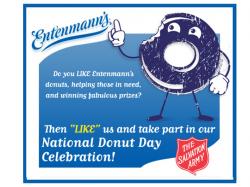 “Donuts are such a historic and celebrated part of our culture,” said Maureen Sticco, Director of Entenmann’s Marketing Services. “Because Entenmann’s Bakery has been baking for more than a century, we’re proud to support the Salvation Army on National Donut Day.”