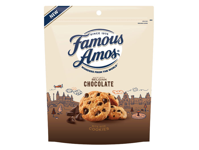 To reflect the brand’s move to a modern, premium cookie, Famous Amos is also bringing a contemporary refined look to the packaging with location-inspired graphics meant to invite the consumer into another world of flavor and resealable stand-up packaging to lock in freshness.