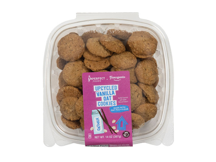 Starting today, Upcycled Double Chocolate Chip and Upcycled Vanilla Oat Cookies are available for customers to add in weekly boxes as part of Imperfect Foods’ fully customizable service.  The cookies are packaged in clamshell containers (14 ounces) that are made of 100% recyclable plastic.  All Fancypants cookies are baked using certified non-GMO ingredients, are peanut and tree nut free, and certified kosher.  Look for the original Upcycled Fancypants cookie, Okara Chocolate Chip, too.