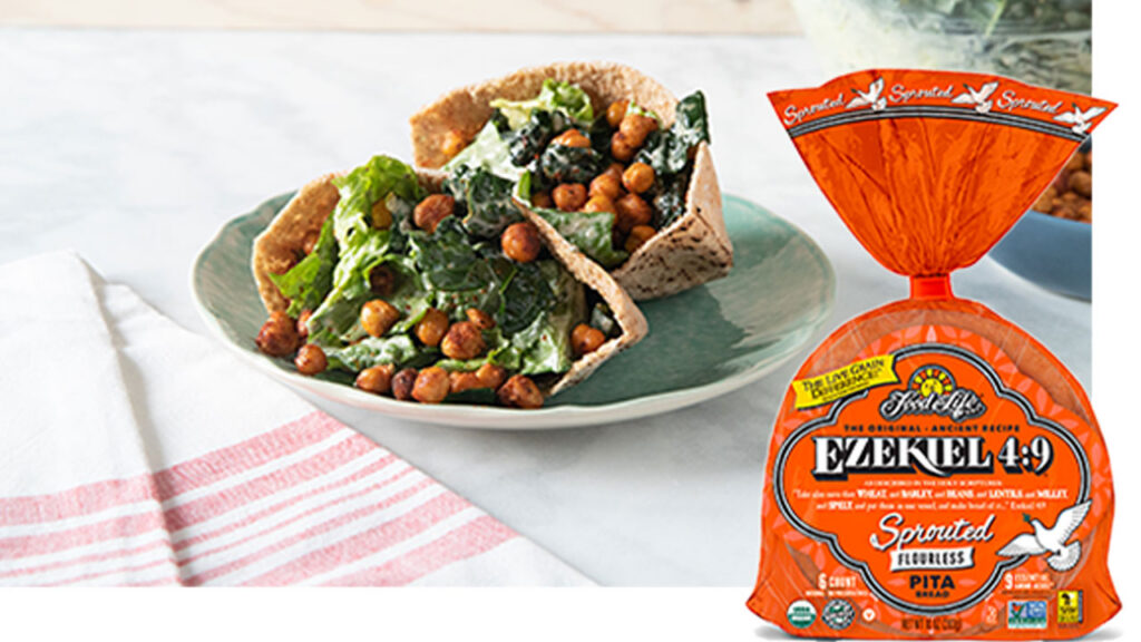 Food For Life sprouts the grains in all of its Ezekiel 4:9 breads, and the company’s new Pita Bread is no exception. Sprouted grains maximize nutrition and increase the absorption of minerals such as calcium, magnesium, iron, copper and zinc by breaking down enzyme inhibitors. Plus, sprouted grains promote a more balanced pH. Food For Life’s unique sprouting process also enhances digestibility by breaking down starches — which also reduces the Pita Bread’s glycemic index. Furthermore, slow-baking each Pita Bread preserves the nutrient-dense properties, including their natural fiber and bran benefits.