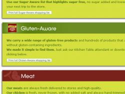 Specific gluten-free products are highlighted through in-store displays in all stores. Additionally, eye-catching maroon and green labels identify many more gluten-free products throughout the store.