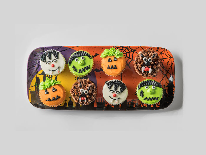- Meet The Creeps Cake & Cupcake Platter, $19.99 — For those planning to host or attend a Halloween party this year, you can’t go wrong with a festive platter that’s complete with 12 spooky character cupcakes and a 7-inch chocolate or vanilla cake with either traditional or whipped vanilla icing.
