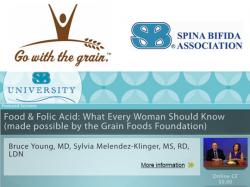 To help raise awareness of the important role enriched grains play in preventing neural tube defects, the Grain Foods Foundation has developed an online course on folic acid through the Spina Bifida Association (SBA)’s SB University, a self-paced online educational experience, which covers a wide variety of topics of importance to health professionals and members of the Spina Bifida community. The course, “Food & Folic Acid: What Every Woman Should Know,” will launch at the start of Folic Acid Awareness Week (January 8 – 14) and will be available for free viewing at www.sbuniversity.org.