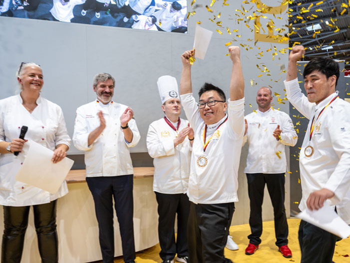 Alongside the panel of judges, trade fair participants could follow every step live in the glass show bakeries in hall A4. The international competition was once more a highlight and magnet for visitors in 2023. As the competition days progressed, the panel of judges judged and tasted the works of confectionery while the contestants were being cheered at by a large number of spectators: “I am so delighted that four international teams took part in this competition at iba. It was a great opportunity to give a live demonstration of the fine art of confectionery, to promote an exchange of ideas and creativity in this skilled craft,” said chair of the judeges’ panel Bettina Schliephake-Burchardt. The following criteria were assessed: appearance, taste, variety and creativity. In the end, Yeon Sunheum and Han Doyoung from South Korea won the gold medal. They accepted the coveted award in the iba.FORUM at 4 pm on 26 October, thereby becoming the winner of the Cup of Confectioners. Second place went to Victoria Gravdal and Xiao Juan Peng from Norway, third place to Min-Yu Teng and Peng-Yi Lin from Taiwan.