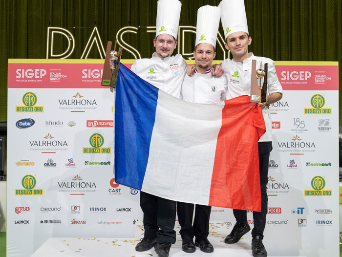 France won the Junior Pastry World Cup, the world’s only team event aimed at young Under-23 talents, held at Sigep for the seventh edition with 11 teams competing.