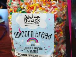 Sugar-y, cake-y "Unicorn Bread" is a vanilla-flavored bread topped with vanilla frosting and sprinkled with a healthy dose of rainbow sprinkles that the packaging refers to as "unicorn sparkle." It's also as elusive as a unicorn. According to their Facebook page, Bakehouse Bread Company's bread will only be available in Kroger stores for the month of April, so if you're all about the unicorn trend you'd better get your hands on a loaf quick!
