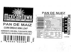 PAN NUEZ, MAGDALENA, PAN DE MAIZ, YOYO and TACOS DE PAN DANES are sold in clear plastic bags of three or four. Packages are marked as “PAN NUEZ, UPC 95640 00172; MAGDALENA, UPC 95640 00142; PAN DE MAIZ, UPC 95640 00026; YOYO, UPC 95640 00148; and TACOS DE PAN DANES, UPC 95640 00186” with plain or Mexicantown labeling. PAN NUEZ, MAGDALENA, PAN DE MAIZ, YOYO and TACOS DE PAN DANES packages are distributed only in Michigan through retail stores.