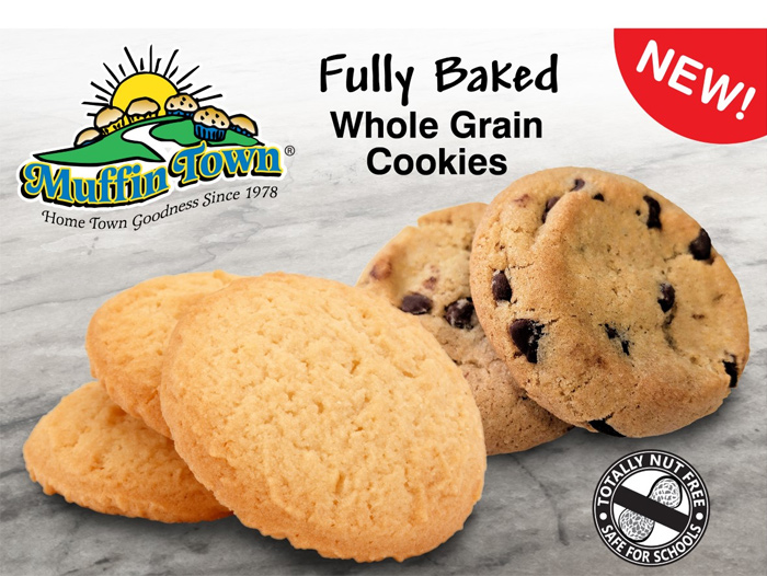 CHELSEA, Mass – Muffin Town now bakes delicious Whole Grain Cookies, ready to enjoy for any Grab & Go application. These Chocolate Chip or Sugar .7 ounce cookies come in wrapped 2-packs, and are totally peanut and tree nut free.
