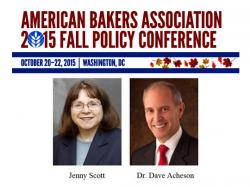WASHINGTON, D.C.  – The American Bakers Association (ABA) is pleased to announce that Jenny Scott, Senior Advisor in the Office of Food Safety with the U.S. Food and Drug Administration’s Center for Food Safety and Applied Nutrition (CFSAN), and Dr. David Acheson, Founder and CEO of The Acheson Group, will speak during the 2015 Fall Policy Conference, taking place October 20-22, at the Marriott Marquis in Washington.