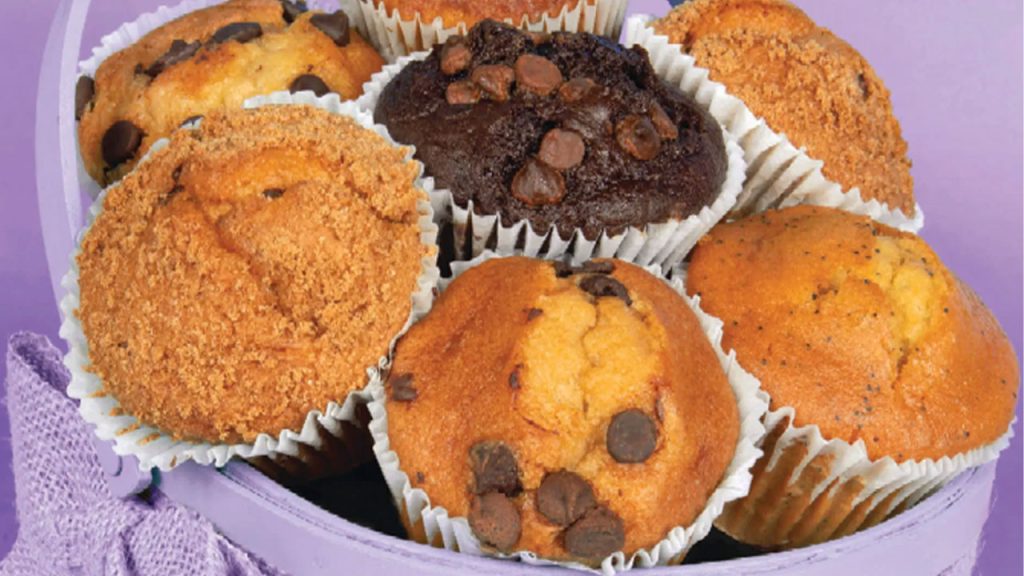 - Muffins (3.5 oz): Cinnamon Chip, Triple Chocolate, Lemon Poppy Seed and Chocolate Chip. Four display-ready caddies per case, six muffins per caddy. Frozen shelf life: 270 days from the manufacturer date (all items ship frozen). Ambient shelf life from thaw: 10 days.