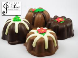 The new mini bundt cakes will be offered in a variety of flavors, including Double Chocolate, Peanut Butter, Vanilla Bean and Chocolate Cherry. All are coated in rich dark or milk chocolate and hand-decorated with chocolate drizzle and holiday-themed royal icing adornments. “Each of these gorgeous little bundt cakes can be sliced to serve up to 4, so they will be a truly unique and affordable gift for the holiday season,” says Krulac.