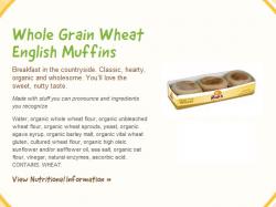 According to Men’s Health’s November issue, with only 120 calories, 5 grams of protein, 23 grams of carbs, 3 grams of fiber, and 1 gram of fat, Rudi’s Organic Bakery Whole Grain English Muffins are a great way to upgrade your breakfast. Beginning your day with a Rudi’s Organic Bakery Whole Grain Wheat English Muffin topped with tomato, egg and Swiss is an ideal way to start getting your recommended daily allowance of whole grains and other important nutrients.
