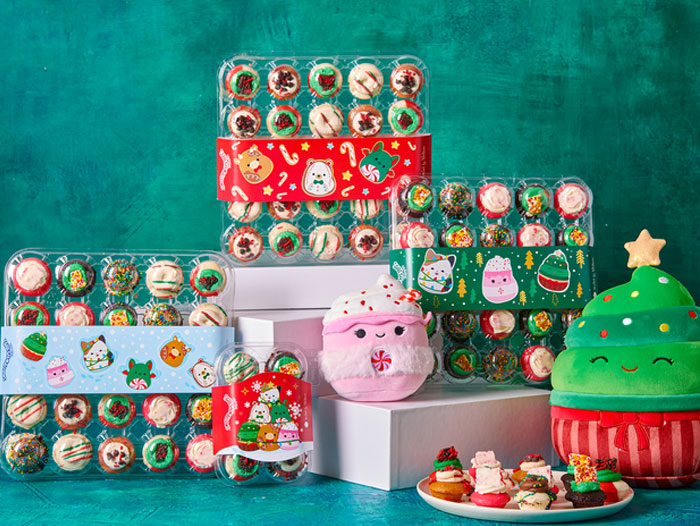 “Squishmallows is a premiere lifestyle brand for every season and this holiday fans can treat themselves, family, and friends to this delicious colorfully customized assortment of indulgent bite-size cupcakes,” said Gerhard Runken, Executive Vice President, Brand & Marketing, Jazwares. “Collaborating with Baked by Melissa was a delicious new way for fans to experience Squishmallows this holiday season.”