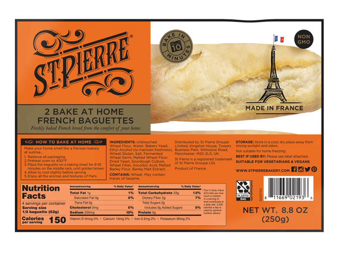 David Wagstaff, VP North America, St Pierre Bakery explains, “The entire St Pierre range is designed to elevate the everyday with items that meet many meal occasions This new range has been in development since 2019 and we’re excited to bring it to market. The bake at home range is non-GMO, Vegan and really gives the consumer the premium quality, authentic French bread you would get from a Parisian bakery, but with the added convenience of ‘bake at home’.”