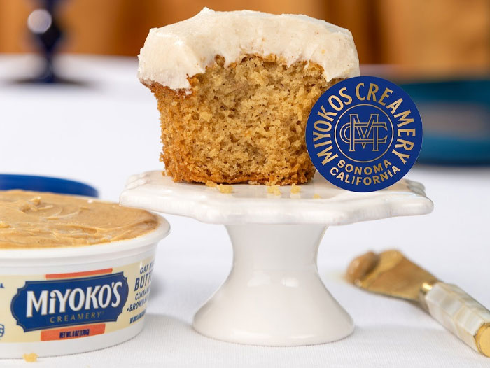 This seasonally-inspired cupcake features a moist, vegan spice cake made with Miyoko’s Cinnamon Brown Sugar Oat Milk Butter, and is topped with a velvety spiced vegan cream cheese frosting. Each bite is a perfect blend of warmth and sweetness, crafted with the finest ingredients and time-honored techniques. The decadent taste and high-quality ingredients make these dairy-free cupcakes the perfect go-to dessert for upcoming family and friend gatherings.