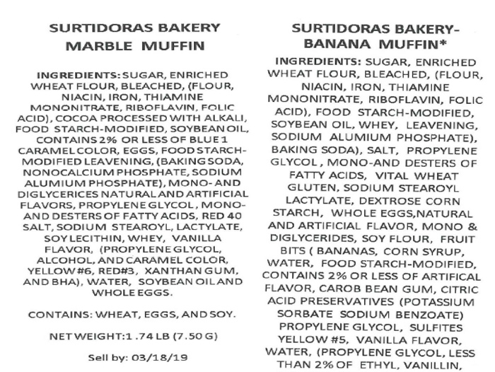 Surtidoras Bakery Inc. Issues Allergy Alert on Undeclared Milk in Marble Muffin, Banana Muffin, and Blueberry Muffin