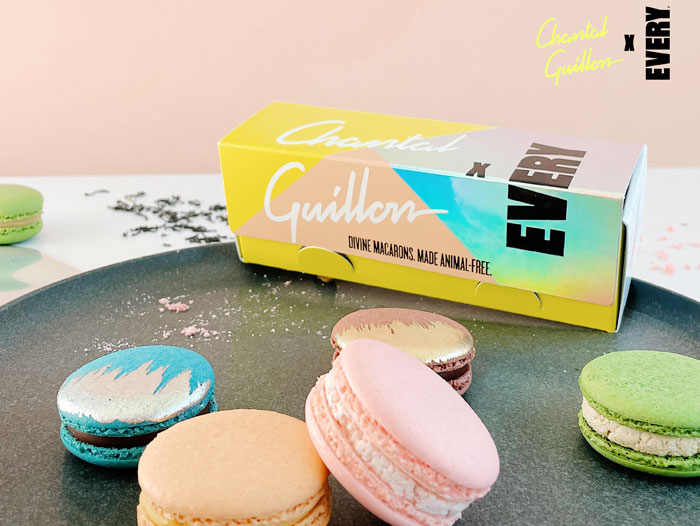 The Chantal Guillon specialty macaron’s featured ingredient, the world’s first animal-free egg white by EVERY™, possesses all the functionality of egg whites but requires no factory farms and less water, land, and greenhouse gas emissions. Unlike all other alternatives in the market, EVERY EggWhite™ tastes, whips and gels like a chicken-derived egg white to provide the same height, foam stability, aeration, and texture needed for baking, and can be used in applications that span the gamut from cakes, cookies and breads to protein bars, plant-based meats and pastas. It is suitable for vegans, but it is not suitable for those with egg allergies due to its game-changing nature-equivalent formulation.