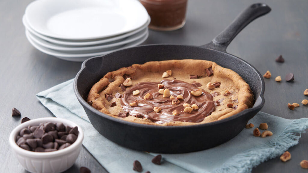 • Hazelnut Chocolate Cookie Pie – Imagine a giant ooey gooey, melty, fresh-from-the-oven Shareable Chocolate Chunk Cookie topped with hazelnut cocoa spread and scattered with chopped nuts and a sprinkle of salt. Every cozy bite is the most delectable combination of sweet, chocolatey, and salty.