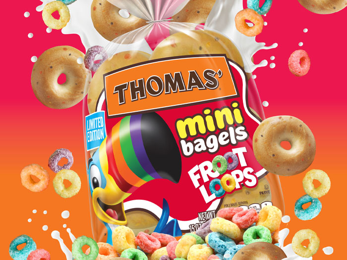 “As the most important meal of the day, we believe that breakfast is an occasion to be savored,” said Jinder Bhogal, Senior Brand Manager for Thomas’. “Through this exciting collaboration, Thomas’ wants to inspire more delicious ways to enjoy moments spent together at the kitchen table, especially for our younger fans. We’re dedicated to bringing new and innovative flavors to our consumers and can’t wait for fans of both Thomas’ and Froot Loops to fall in love with our new Mini Bagel offering!”