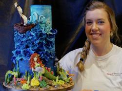 More than 3,000 people attended the competition. First time competitor and Lead Designer of Triolo’s Bakery, Amanda Cote, won First Place in the Professional Novelty Tiered Cake for her “Surging Paradise” cake design.