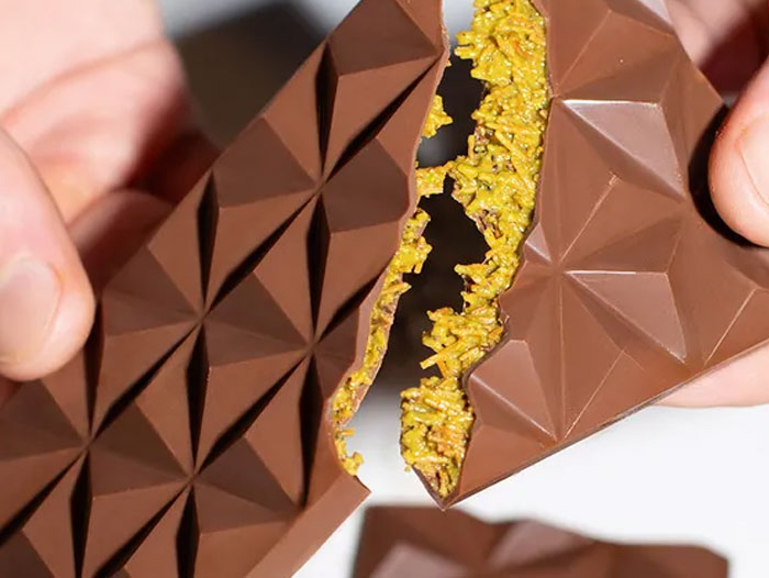 The trend began with a chunky chocolate bar by Fix Chocolate, filled with gooey pistachio paste and crispy toasted knafeh pastry. Social media exploded with videos of people breaking open the bar, delighting as the oozy filling spills out. Initially exclusive to Dubai, it quickly became known as the “Dubai bar” or “Dubai chocolate”. Demand surged quickly, prompting chocolatiers and confectioners worldwide to craft their own takes on the Dubai bar.