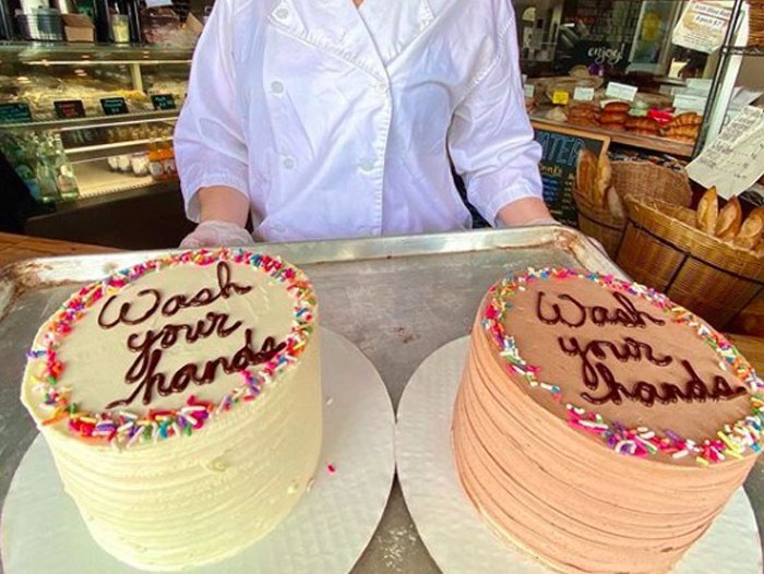 ALEXANDRIA, Va. — Bread & Water Company launched a redesigned website offering online ordering and delivery services to the immediate area surrounding their Belleview HQ location for the first time since opening their doors in 2011. To celebrate, the bakery created a series of cakes emblazoned with a polite reminder: “Wash Your Hands.” The bakery also released a limited supply of house-made hand sanitizer.