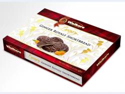 – Ginger Royals: A unique shortbread, combining the moistness of real stem ginger with the crispness of Walkers traditional pure butter shortbread, plus the irresistible taste of dark chocolate.
