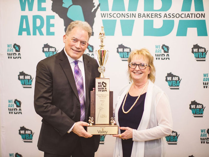 The Bakery of the Year award dates back to when it was first presented back in 2001 and recognizes an outstanding bakery operation annually. The purpose of the award is to highlight the success and accomplishments of WBA Member bakeries. This year’s Bakery of the Year award was sponsored by Valley Cooperative Association. The Heils received a permanent trophy to display in their bakery.