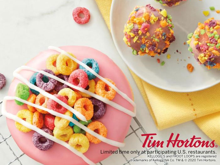 Tim Hortons introduced its newest Dream Donut & Timbits Donuts inspired by a Kellogg’s breakfast cereal favorite – the Froot Loops Dream Donut on Thursday.