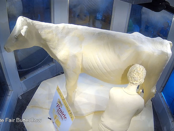The iconic sculpture will remain on display in the Dairy Building for the duration of the fair and is viewable live via the Butter Cow webcam.