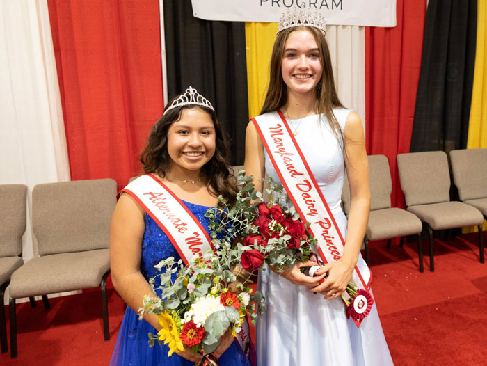 Photo caption – MD Dairy Princesses: Katie Jones, Upper Chesapeake Dairy Princess (right) was named Maryland Dairy Princess, and Layla Shepard, South Central Dairy Princess (left) was named Alternate Maryland Dairy Princess, on Sept. 1, at the Maryland State Fair. Photo courtesy of ALH Word and Image, LLC.