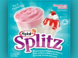 Available in the refrigerator section of major grocery stores nationwide, Yoplait Splitz comes in three unique flavor combinations, Strawberry Sundae, Rainbow Sherbet, and Strawberry Banana Split. Each package of Yoplait Splitz contains four cups of yogurt and has a suggested retail price of $2.49.