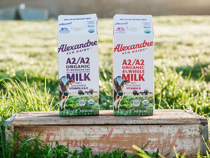 Starting February 1st, Alexandre Family Farm milk will become the first 100% A2/A2 regenerative organic milk to be distributed nationwide. Alexandre cartons (59 oz) will be available at Whole Foods and other retailers throughout the country.