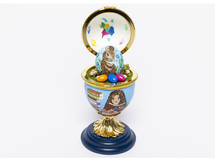 The 2023 First Lady’s Commemorative Egg, intricately designed by longtime egg artist Carolyn Bickel, highlights how the power of education allows children of all ages to meet their goals and dream big for the future. This year’s Commemorative Egg is a hand-painted jewel box design depicting children reading books together, with a hinged top which reveals a miniature Easter scene featuring another smaller real, hand-painted egg. The special Commemorative Egg design honors Dr. Biden’s commitment to ensuring quality education to all Americans by visually capturing how children can reach for the stars, one book at a time.